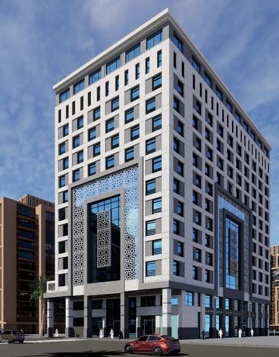 مكوّن من 14 طابقاً سكنياً مع طابق أرضي وميزانين، بمساحة 12.42 متر مربع، للاستخدامين السكني والتجاري.